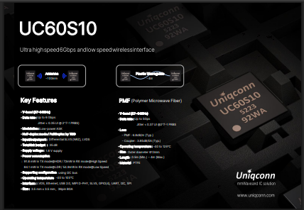 ミリ波60GHz 近距離ワイヤレスIC【UC60S10】 - Uniqconn社製